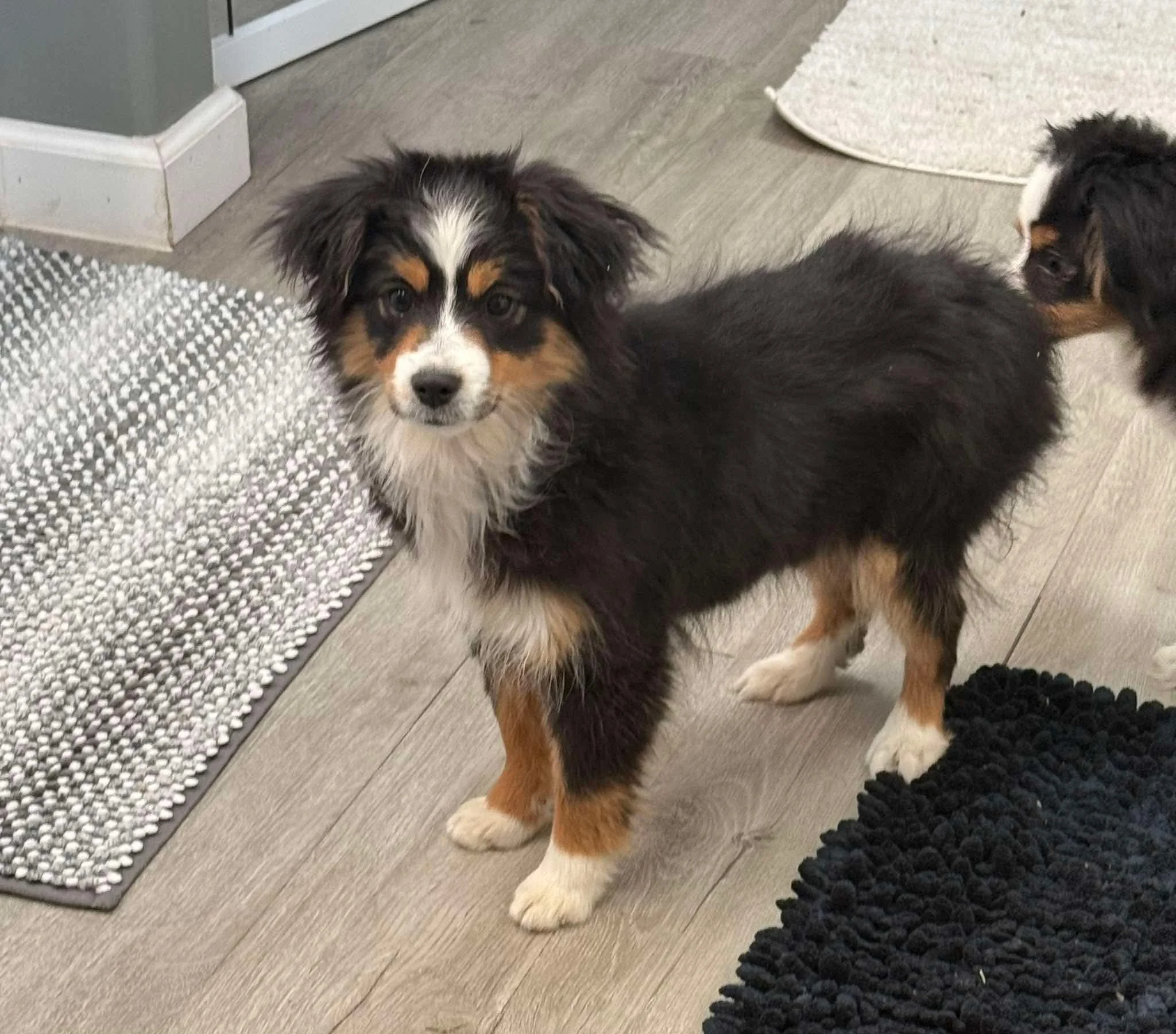 Stunning Black Tri female, dark coper. She is very playful loving puppy. DOB 7-31-25, Estimated 10-12 pounds about 11-12 inches. Loves kids and has been started on potty training and will use dog door, crates quiet at night. Ready now!!